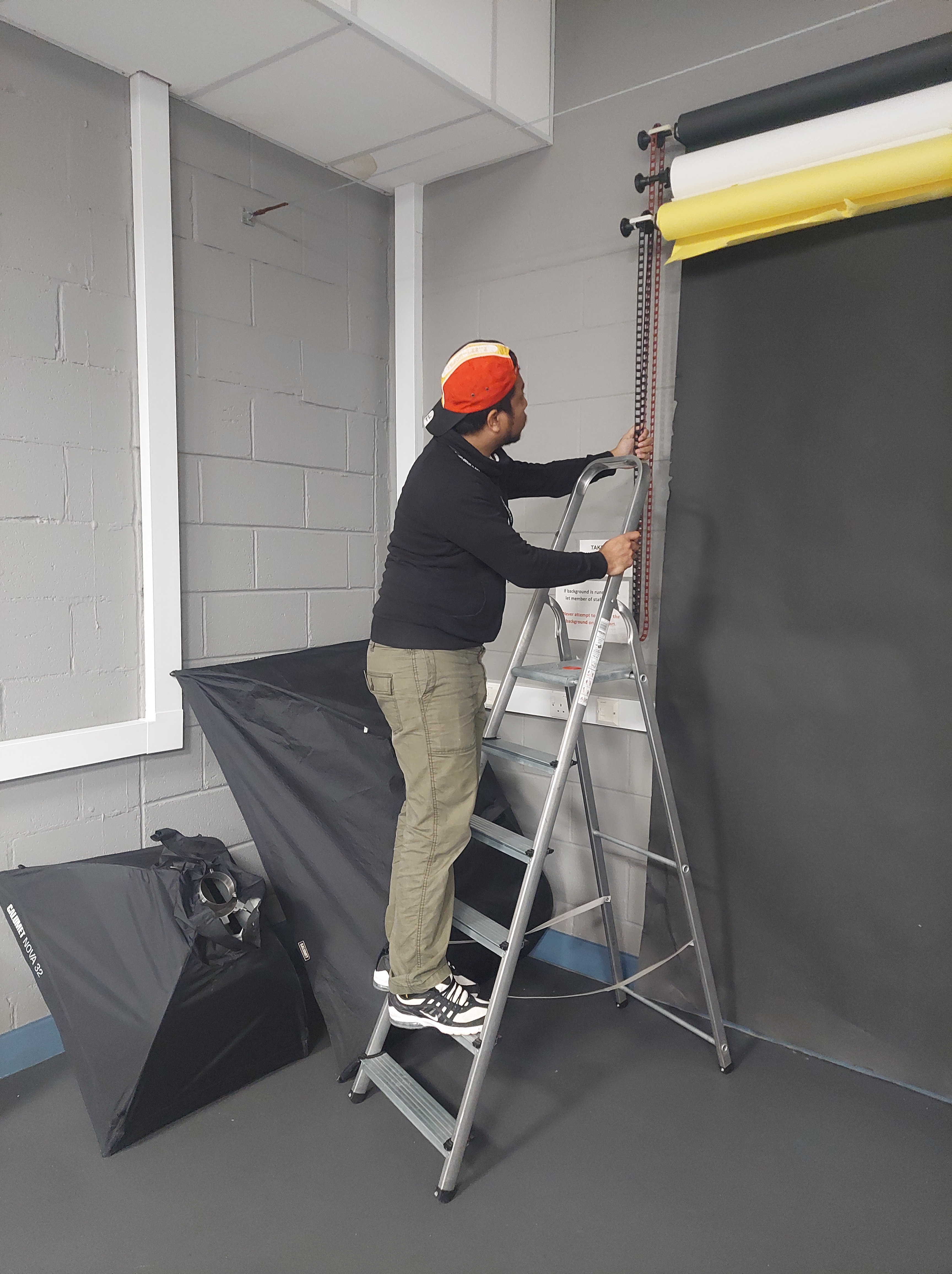 If you need some additional height to adjust with the hanging backdrop gear or a background and you have access to a solid deck that is tall enough to accommodate what you require, utilise the ladder. Avoid step on seats or tables, and when using a ladder that’s higher up, make sure that another person holds the base of the ladder while you’re on it so that it doesn’t topple over while you’re on it.