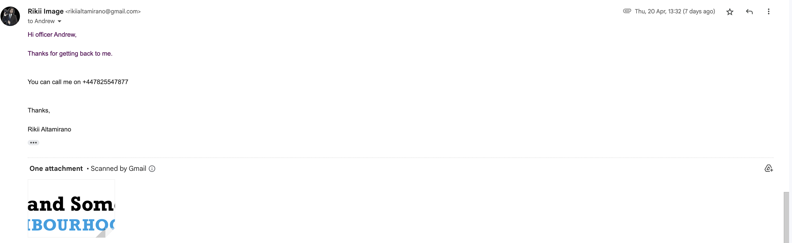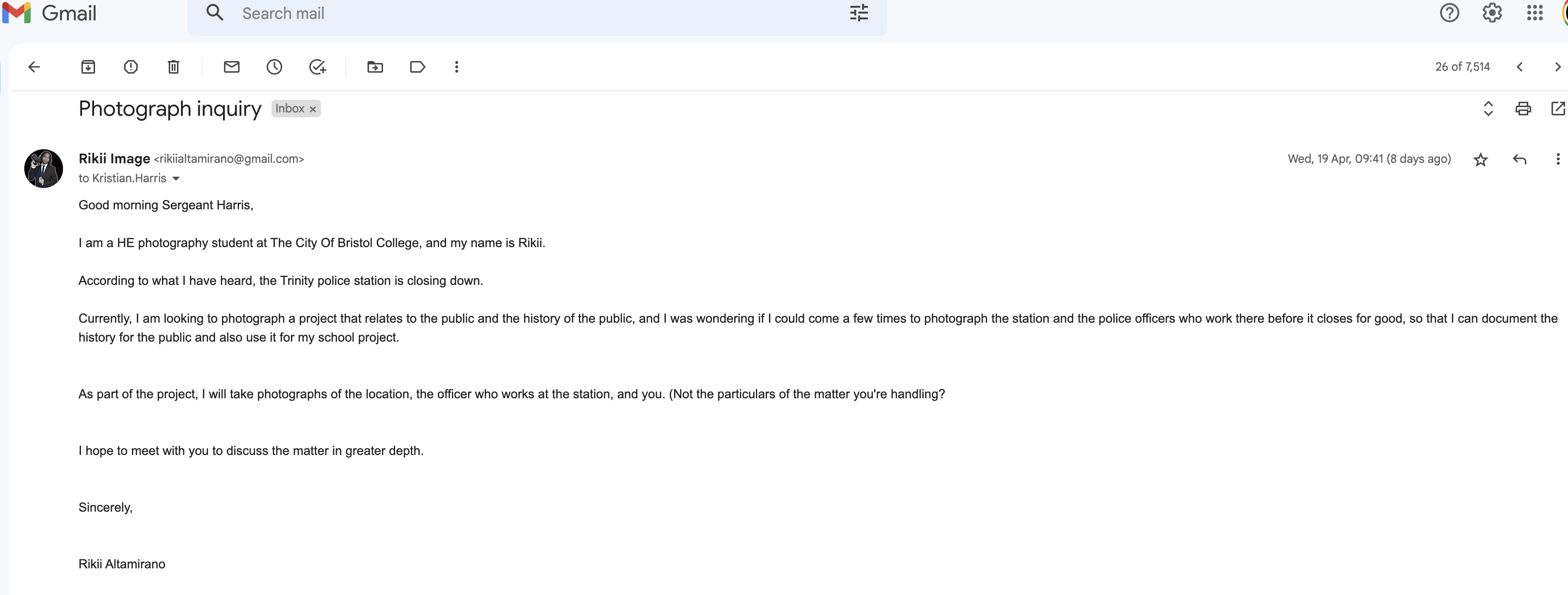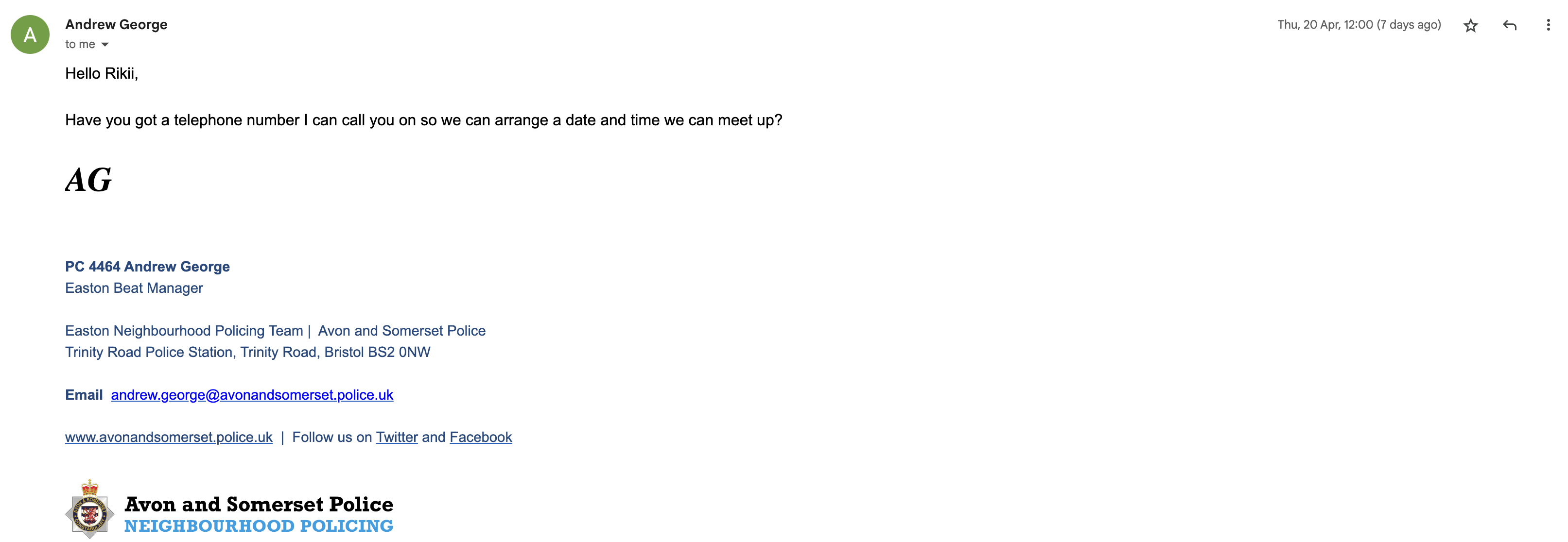 Below is my email correspondence with the police officers during the negotiation.