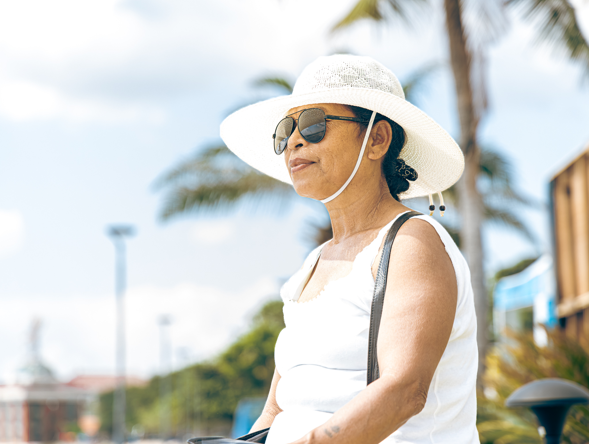 She is waiting for collecting the luggage in the London airport claim baggage collection. I asked him to sit down at the beach but she refused because of her private belongings like bibbles and other things inside the bag. (ISO 16000,f/4.0, 1/250 sec, in post-production I lowered exposure to -0.60, contrast +31, texture +26, clarity +22)