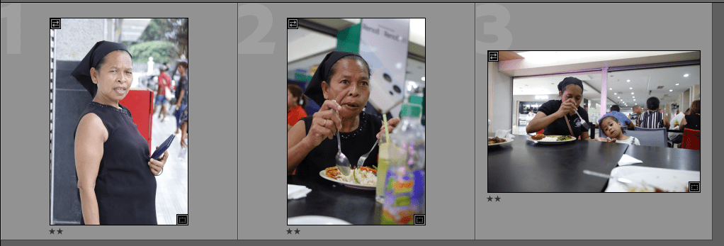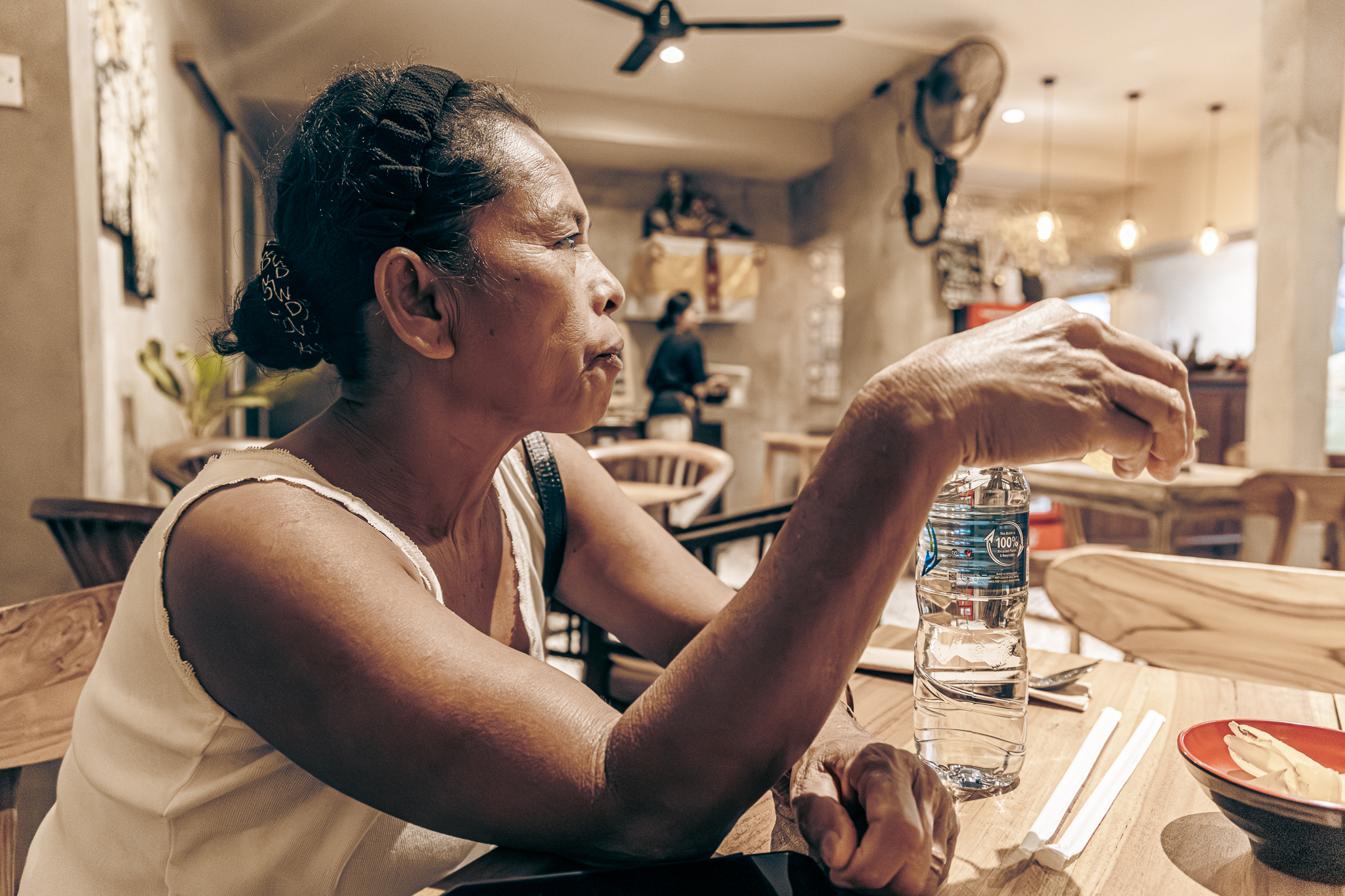 I shot with natural light because this trip is really tricky for me to shoot and look after y mother at the same time, I scanned for sources of light around the subject and adjust my ISO from 400-1600 ISO (for my shutter speed, most of the time stays at 125 and my aperture always move between f/4.0-f/7.1)
