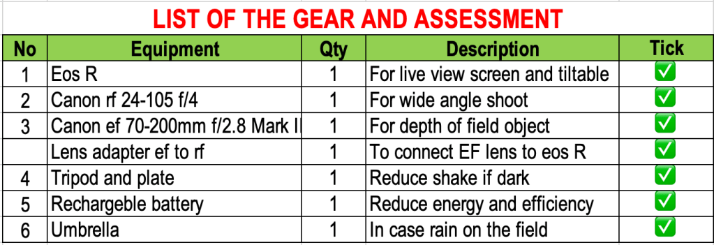 Here is the equipment that have utilised for this project, which is identical to what I used for my previous project on the “Climate Crisis” because it involves being outdoors with the proper equipment.