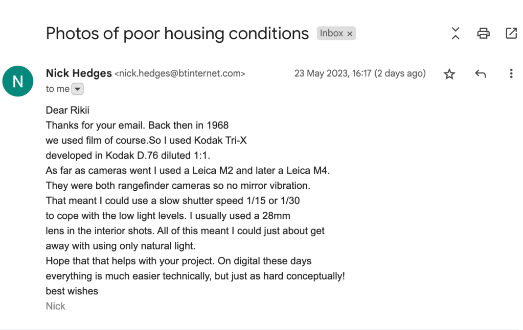 How Nick Hedges shot the project “Families and The Interiors Slum House” back in the 60s: